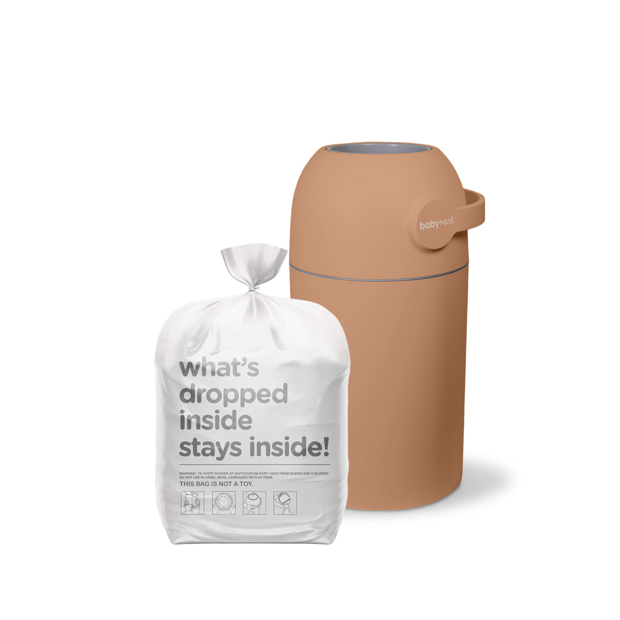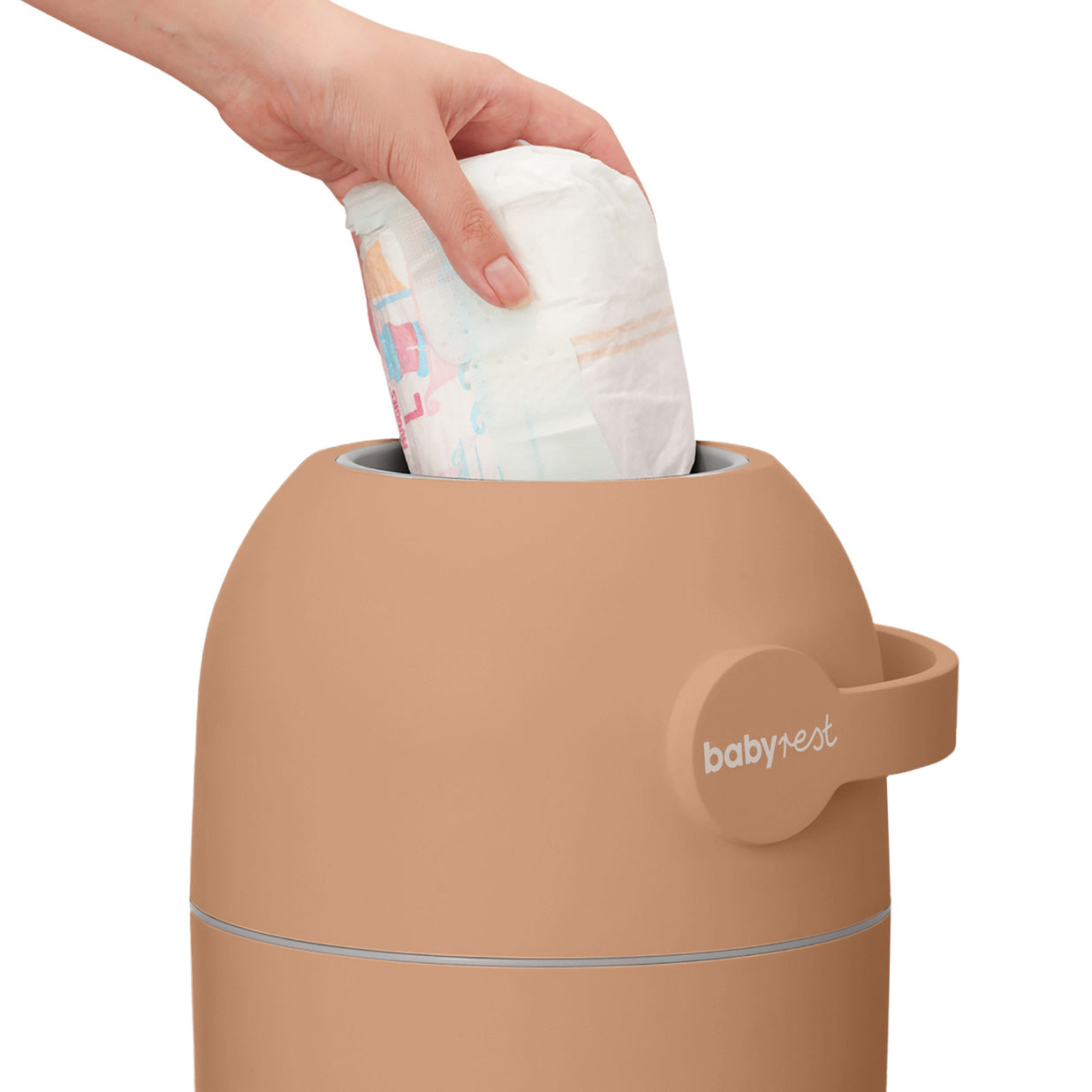 The BabyRest Aster Terracotta combines luxury style with effective odour control like no other. Say goodbye to unsightly nappy bins and hello to one so aesthetic you'll want to display it. To use, simply flip the handle over for the opening to appear.