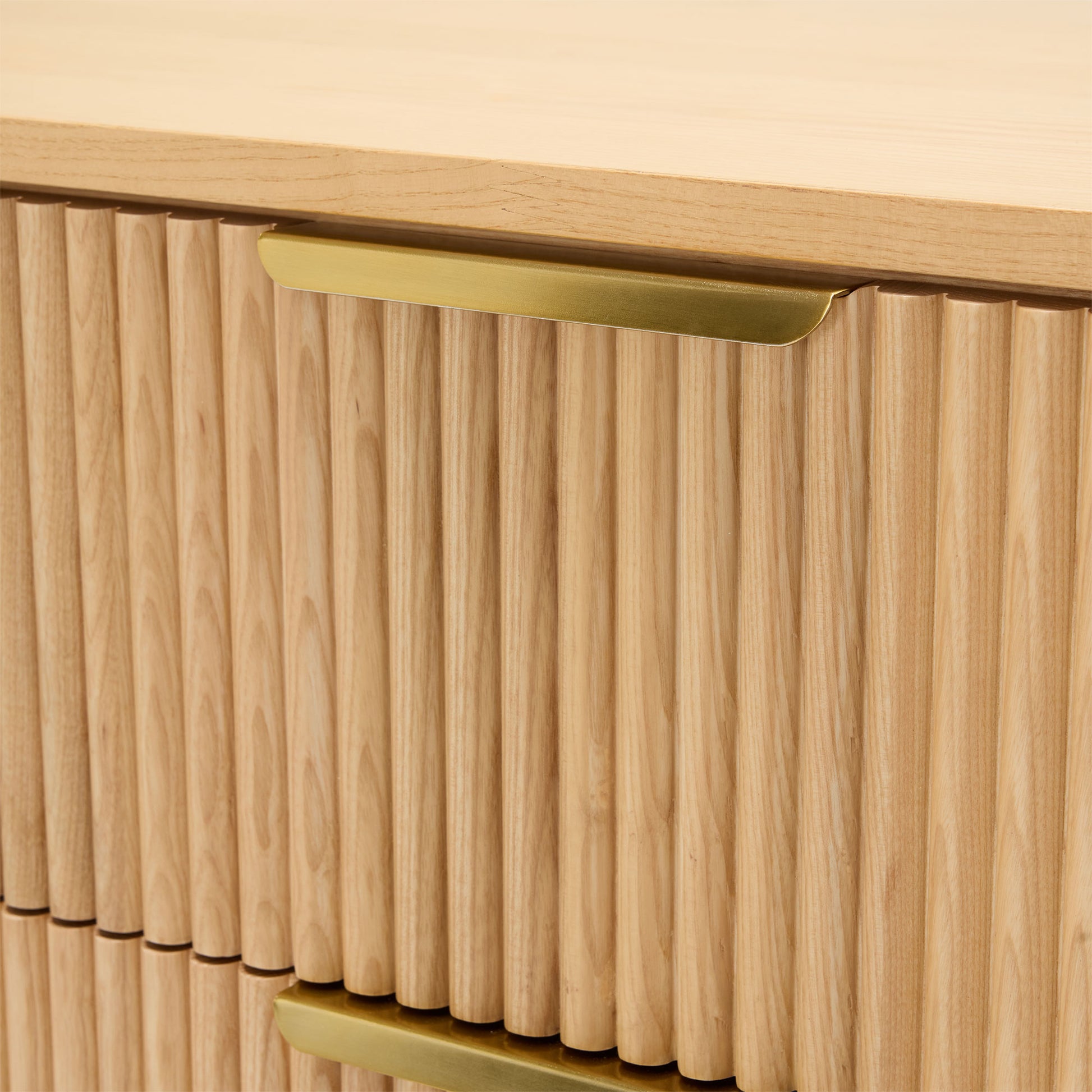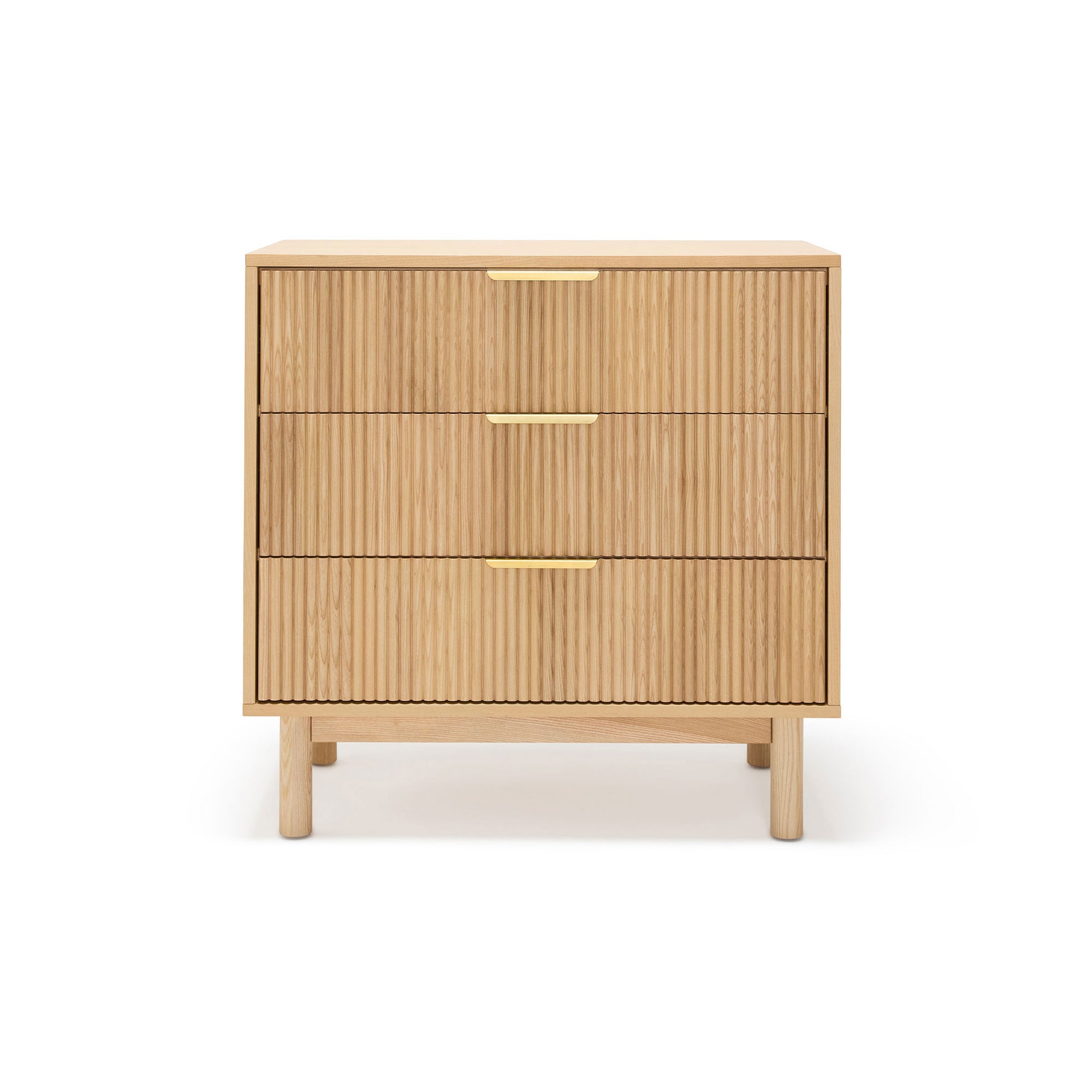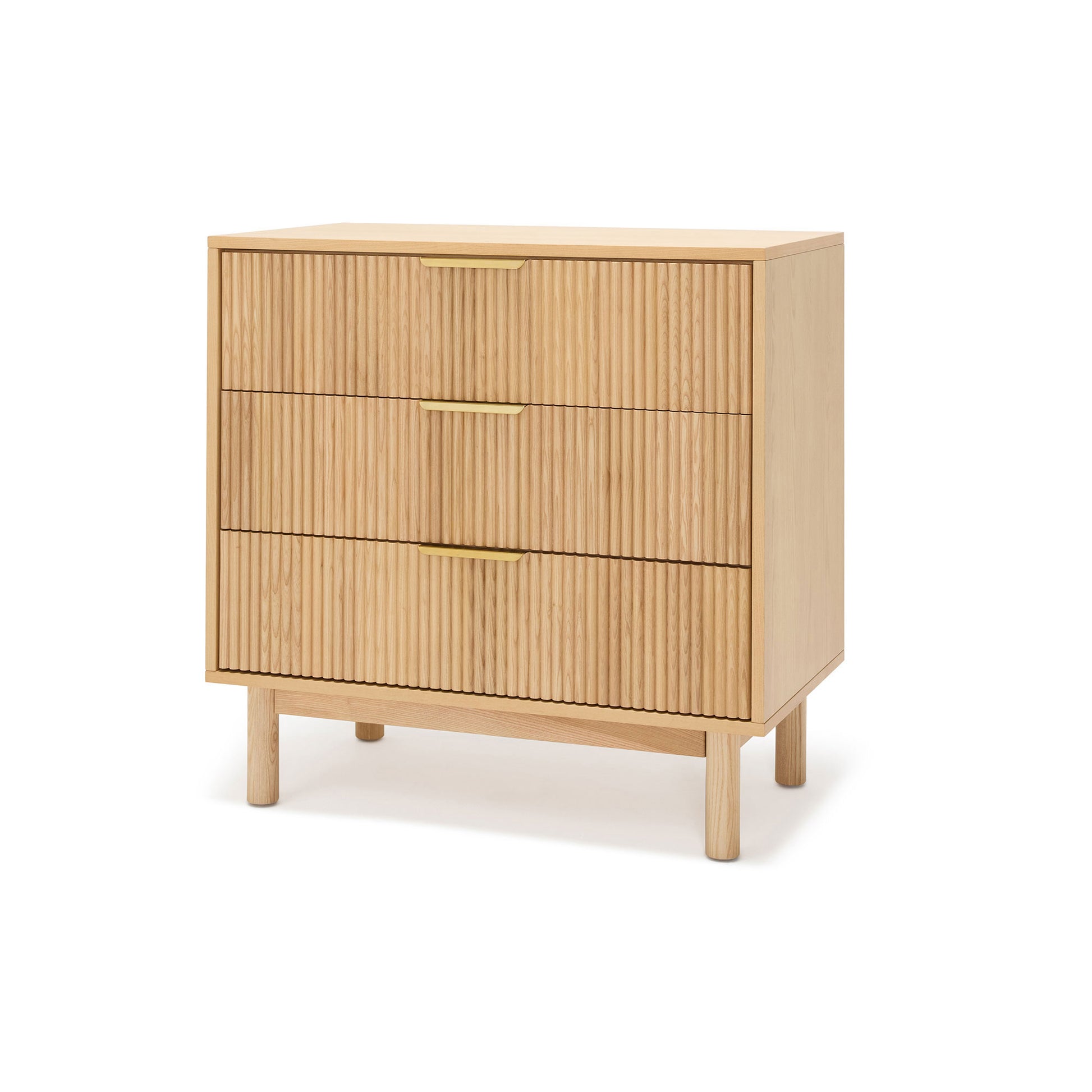 The Chest is completed with elegant brass handles for a luxurious appeal, while the 3 full-width drawers offer versatile practicality.